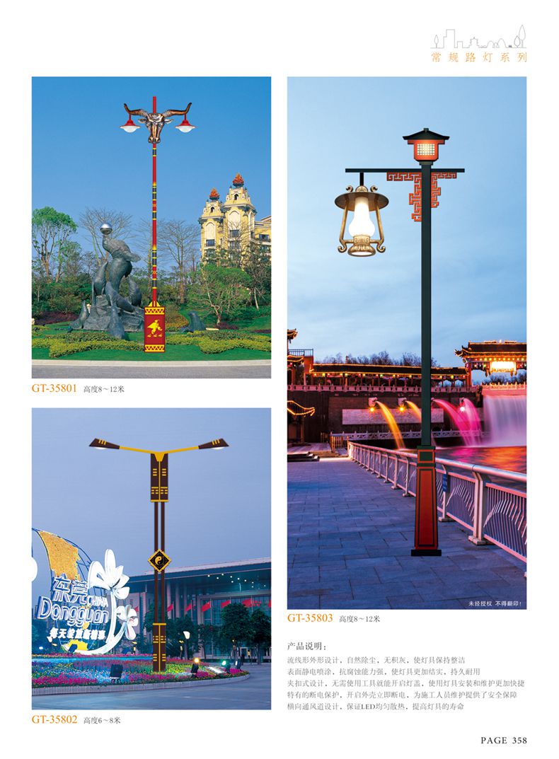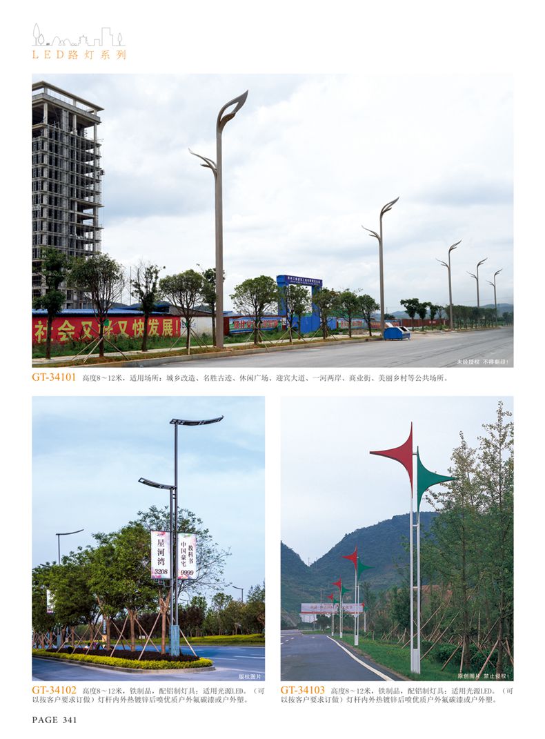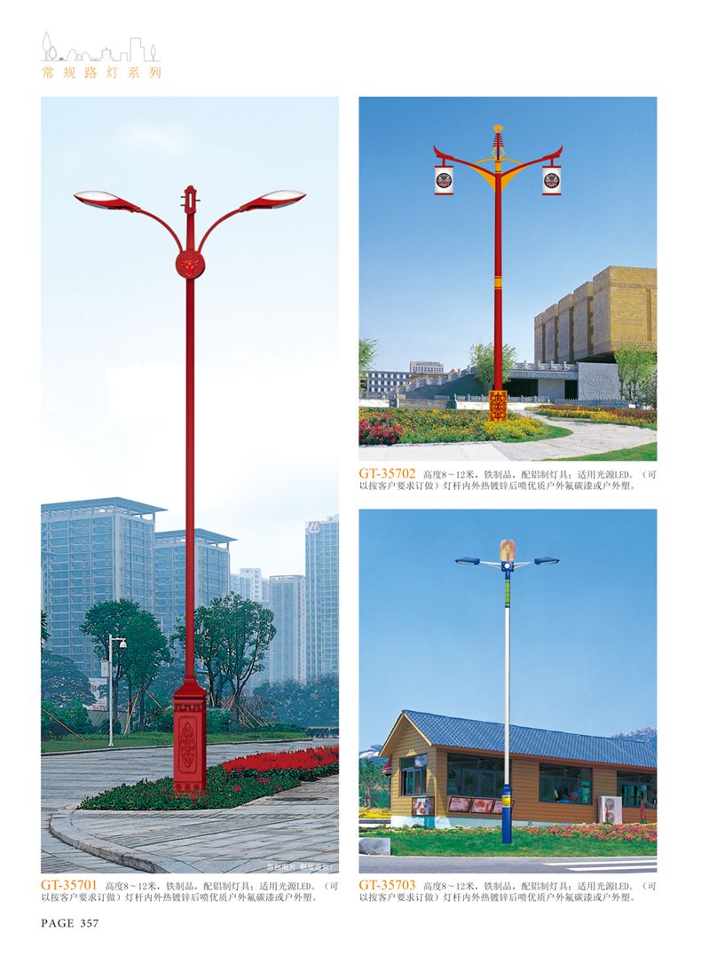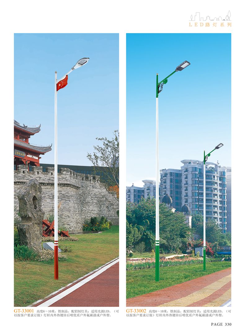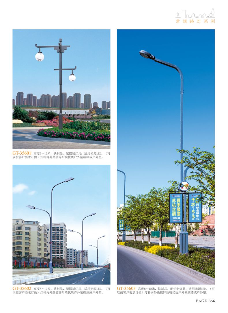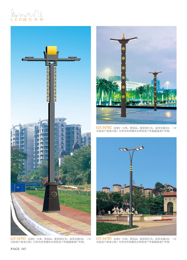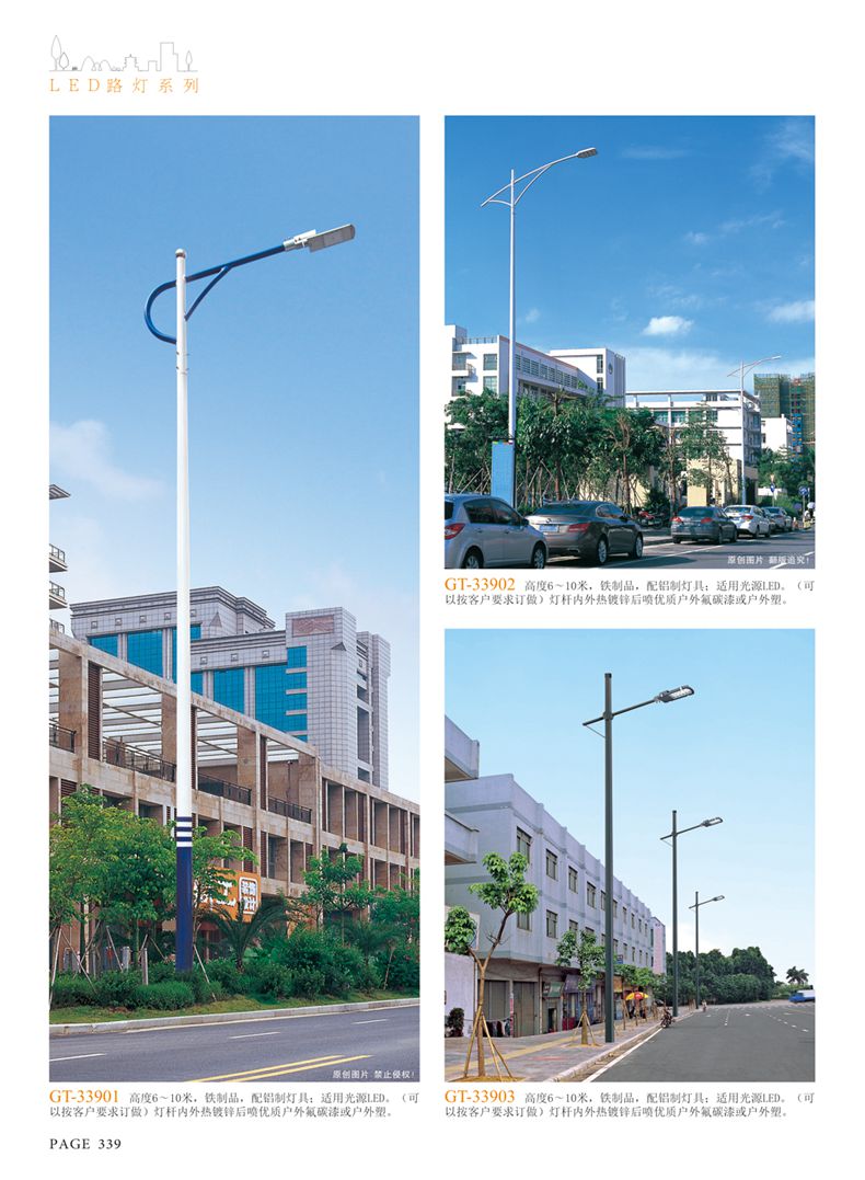 產(chǎn)品名稱:LED道路燈 配用光源:LED30-300W 高壓鈉燈150W、250W、400W 電源參數(shù):220V±10V/50Hz-60Hz 燈具燈頭:壓鑄鋁制品燈具,E40陶瓷燈頭 安裝高度:6米~12米 材料參數(shù):鐵制品內(nèi)外熱鍍鋅防腐處理,燈體表面噴優(yōu)質(zhì)戶外氟碳漆 產(chǎn)品特點(diǎn):設(shè)計美觀、簡潔大方、安裝方便 使用場所:高速公路、城市道路、廠區(qū)、別墅等場所
