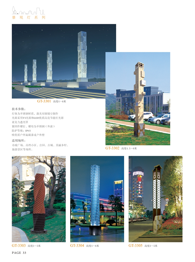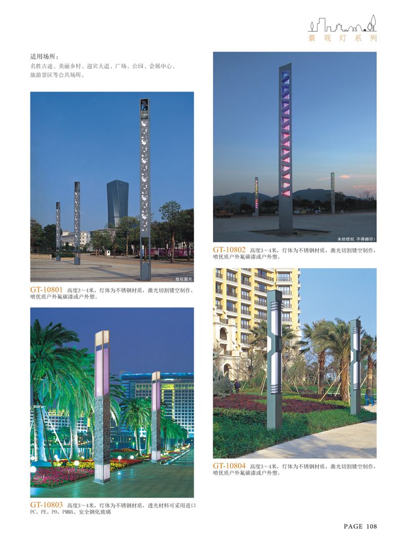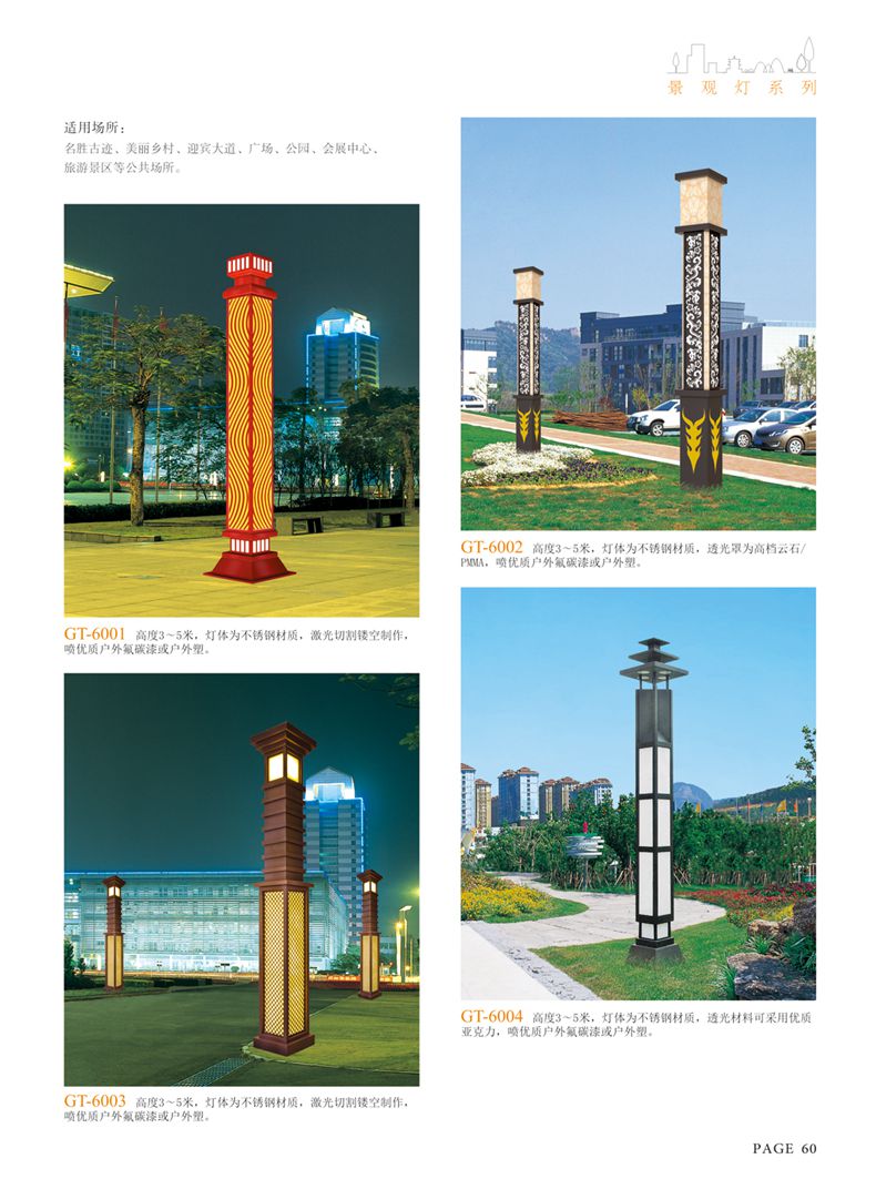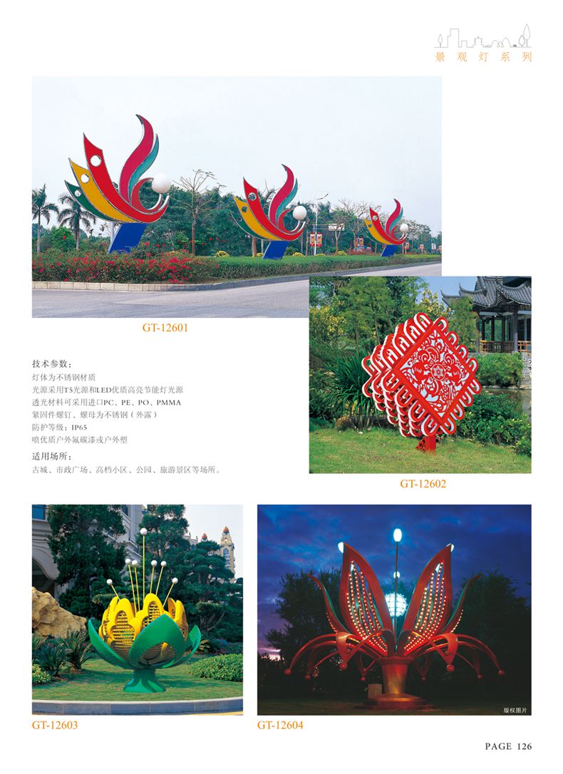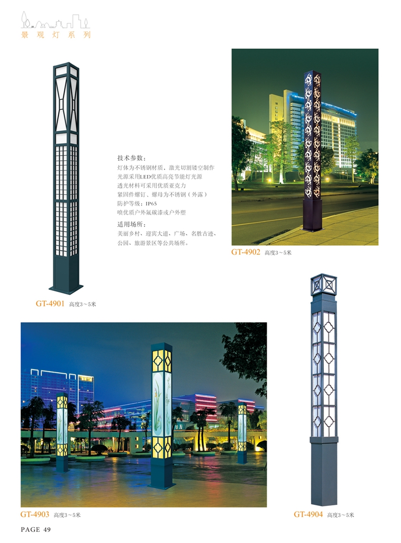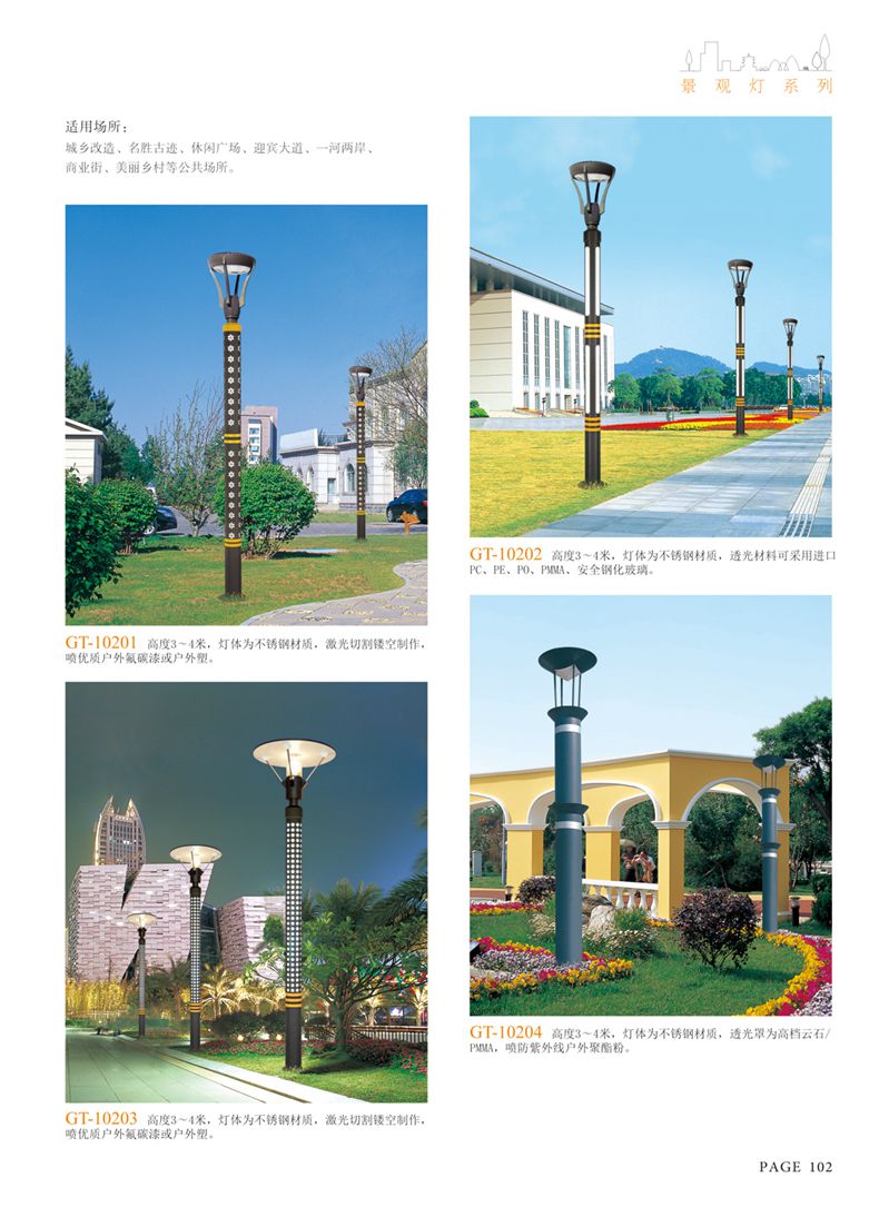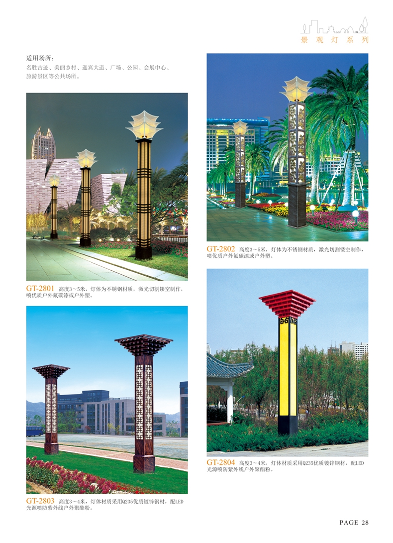使用場(chǎng)所:城市廣場(chǎng)、公園、別墅等景觀照明